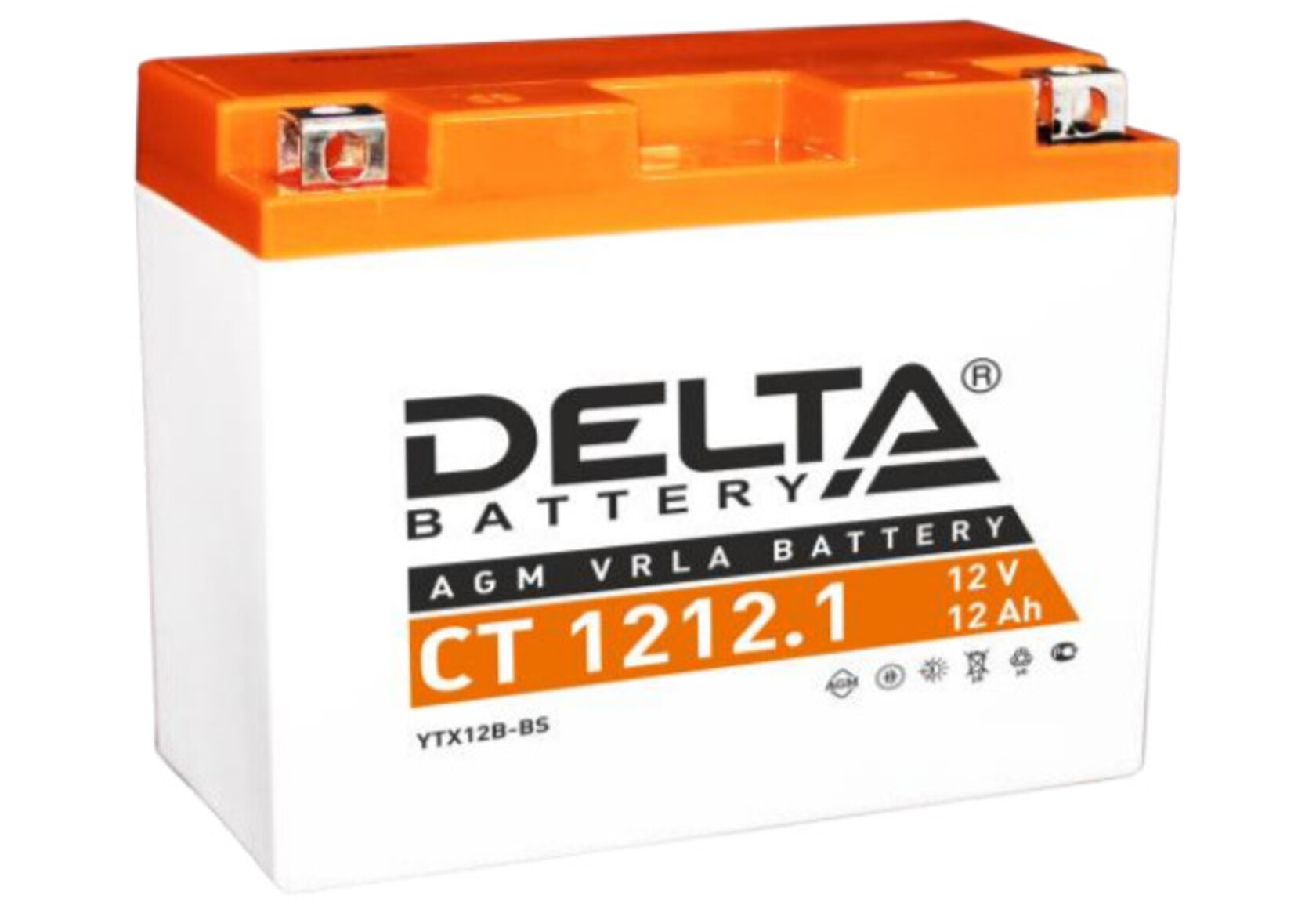 Аккумулятор Delta CТ1212.1 12V12Ah. Герметичная необслуживаемая свинцово-кислотная аккумуляторная батарея VRLA (AGM). Предназначена для пуска двигателей различной малокубатурной мототехники. Соотв. стандарту YT12B-BS