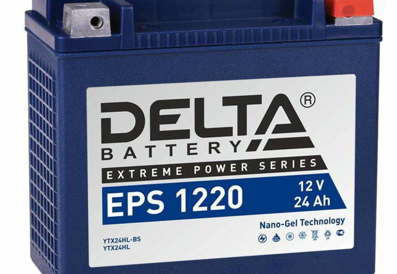 Аккумулятор Delta ESP1214 12V14Ah. Герметичная необслуживаемая свинцово-кислотная аккумуляторная батарея VRLA (NANO-GEL). Предназначена для пуска двигателей различной мототехники. Соотв. стандарту YTX24HL-BS, YTX24HL