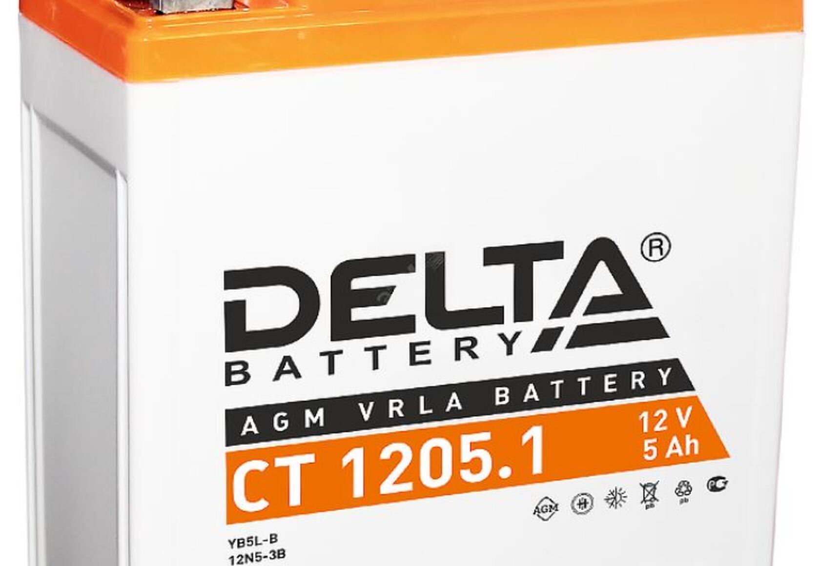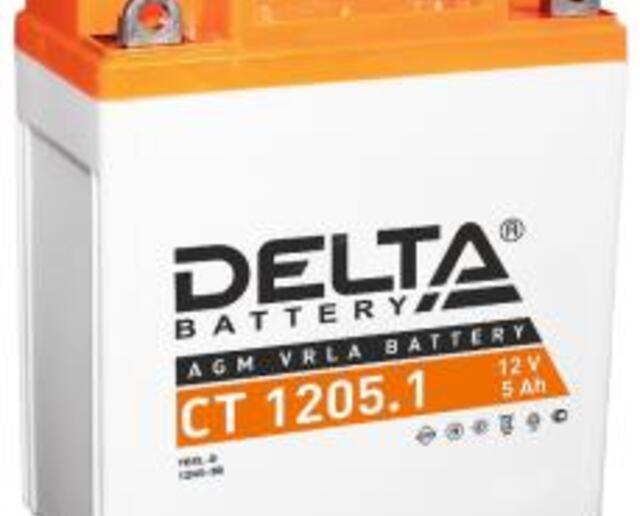 Аккумулятор Delta CТ1205.1 12V5Ah. Герметичная необслуживаемая свинцово-кислотная аккумуляторная батарея VRLA (AGM). Предназначена для пуска двигателей различной малокубатурной мототехники. Соотв. стандарту 12N5-3B, YB5L-B