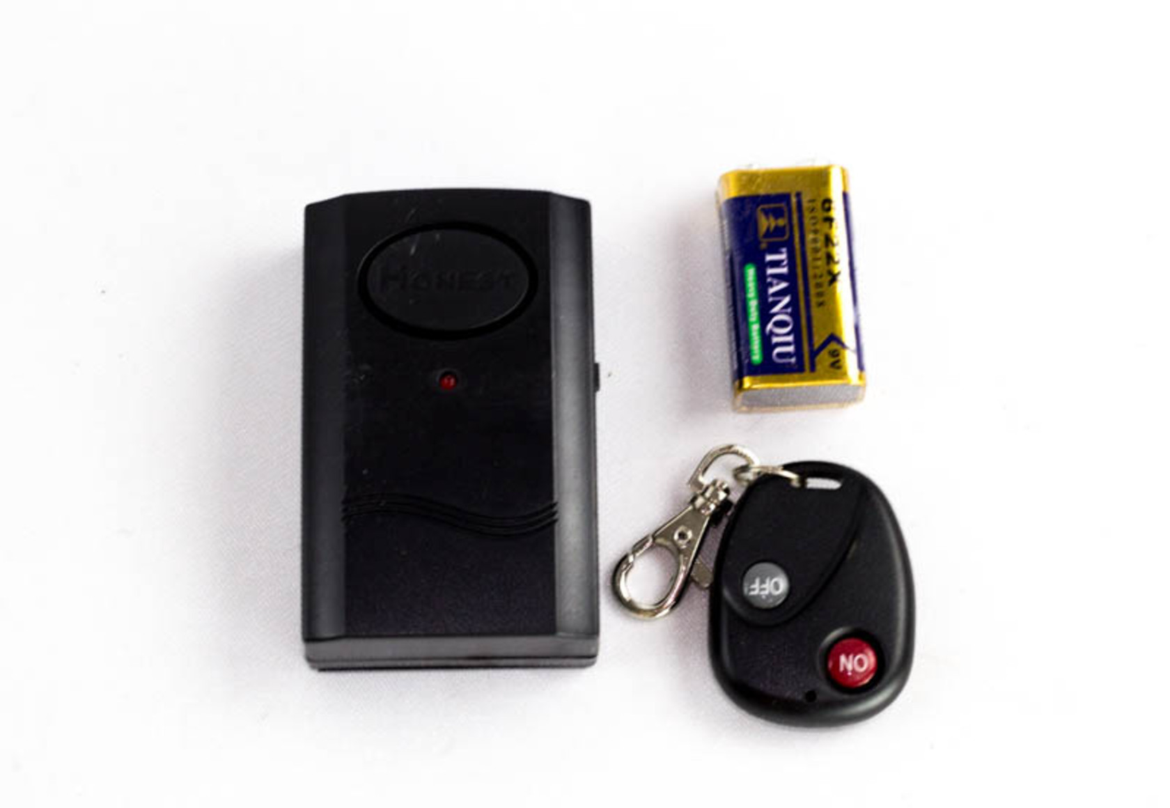 В комплекте блок управления с сиреной с питанием от батарейки типа "крона" и 1 брелок. Блок устанавливается на мототехнику, включается в положение ON, брелоком активируется охранный режим. Срабатывает на вибрацию.