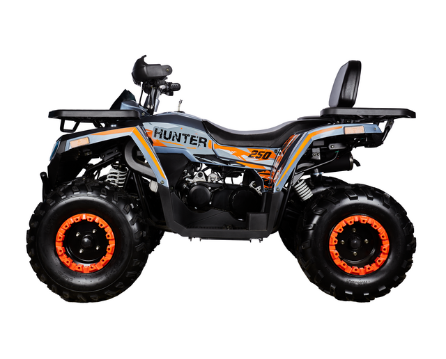 Ключевая особенность модели — подключаемый полный привод. В обычных условиях квадроцикл остаётся заднеприводным, а при ухудшении покрытия можно подключить переднюю ось, увеличив сцепление с покрытием и общую проходимость. В сочетании с понижающей передачей это даёт полный контроль на сложном рельефе, где важна не только скорость, но и тяга. Карданный привод добавляет надёжности и снижает требования к обслуживанию.
