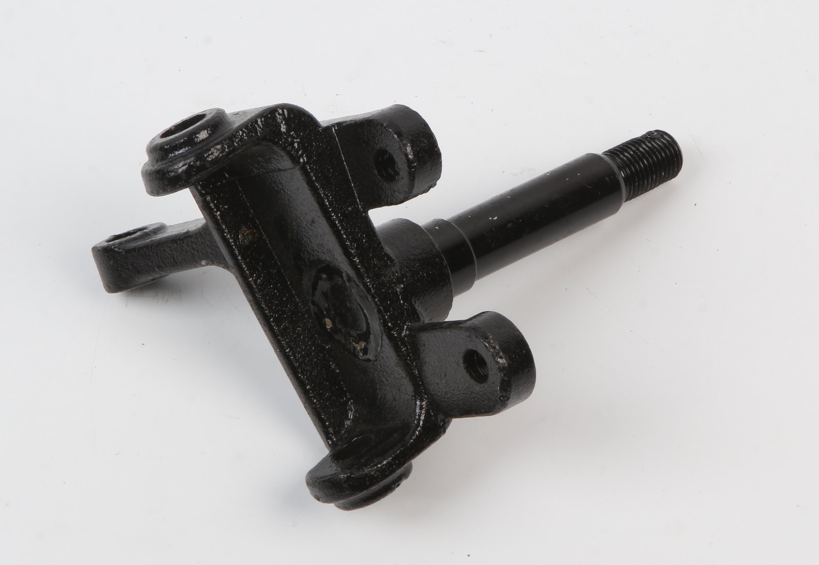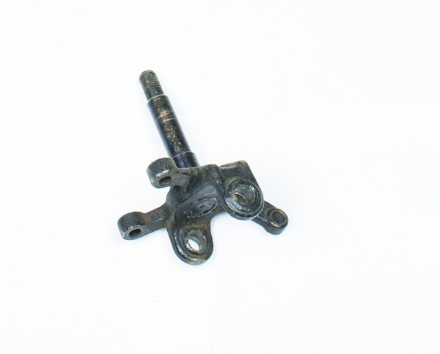 Кулак поворотный левый 110-125сс ( дисковый тормоз) с цапфой. Диаметр пальца шаровой опоры верхний/нижний, мм: 10/10 Диаметр/длина цапфы ( вместе с резьбовой частью, мм: ф17х95 Упорная часть цапфы (диаметр/длина), мм: ф20х17 Резьба ступичной гайки: М14х31 Диаметр и межцентровое расстояние ушей крепления тормозного суппорта, мм: ф10х64
