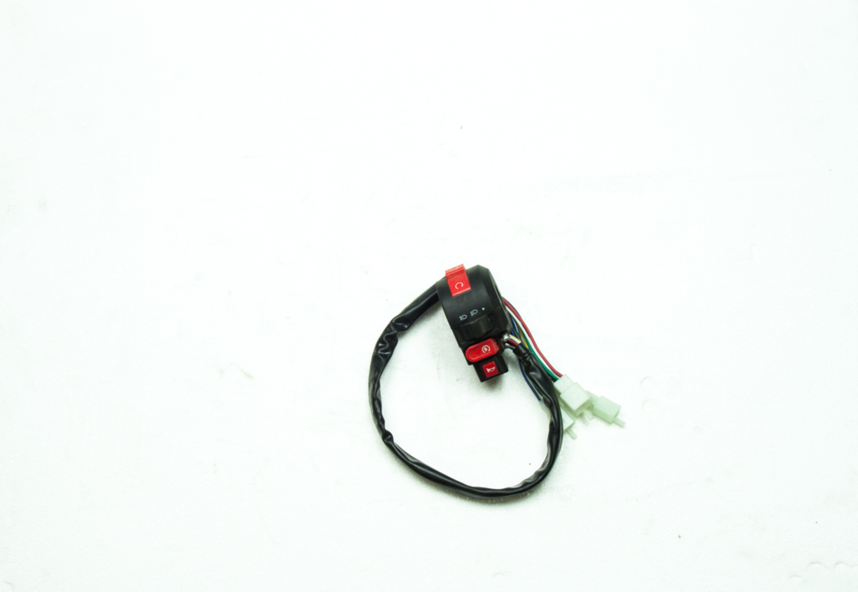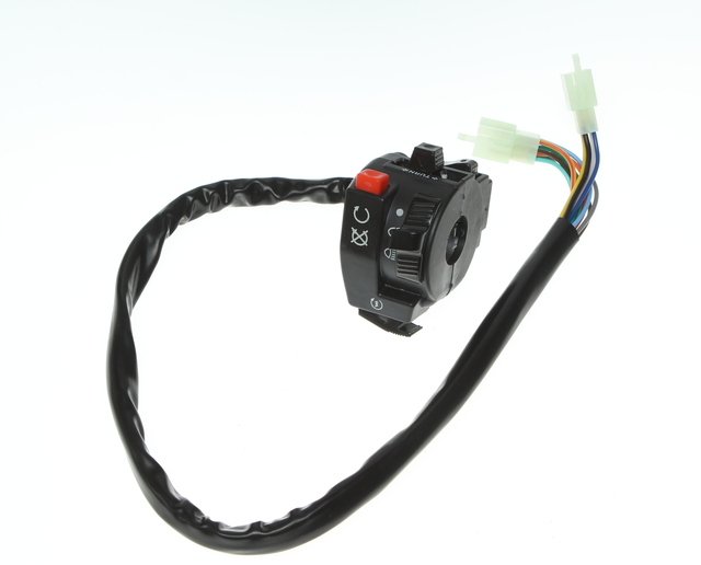 Блок переключателей ( пульт) левый на руль 110-125сс. Кнопки запуска и остановки двигателя, кнопка включения и переключения режимов головного света, кнопка сигнала.