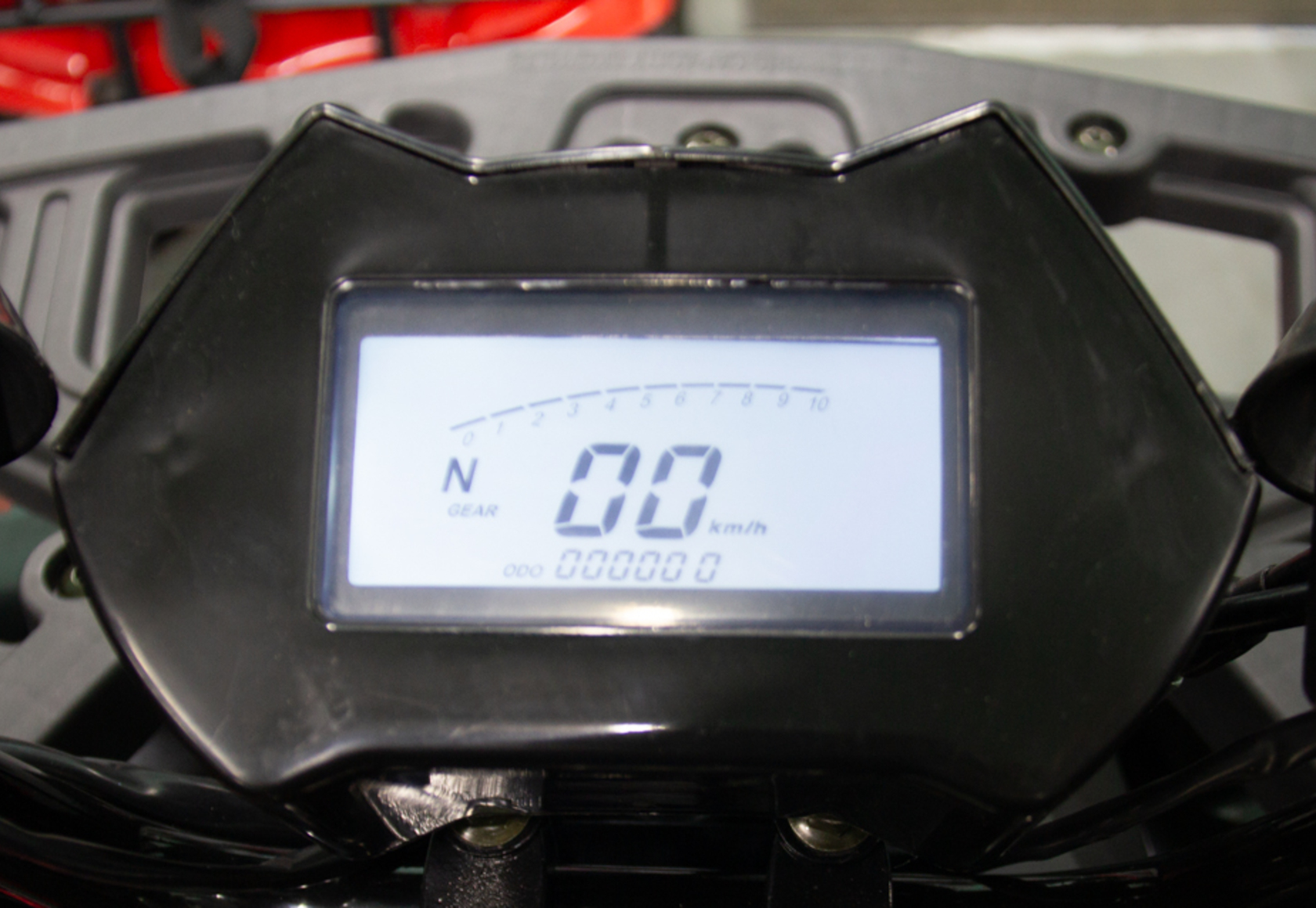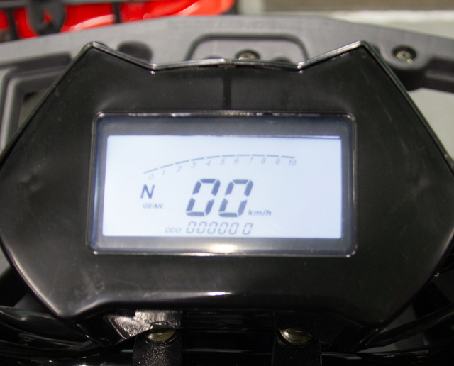 Монохромная ЖК панель с подсветкой и отображением скорости, оборотов двигателя, пробега.