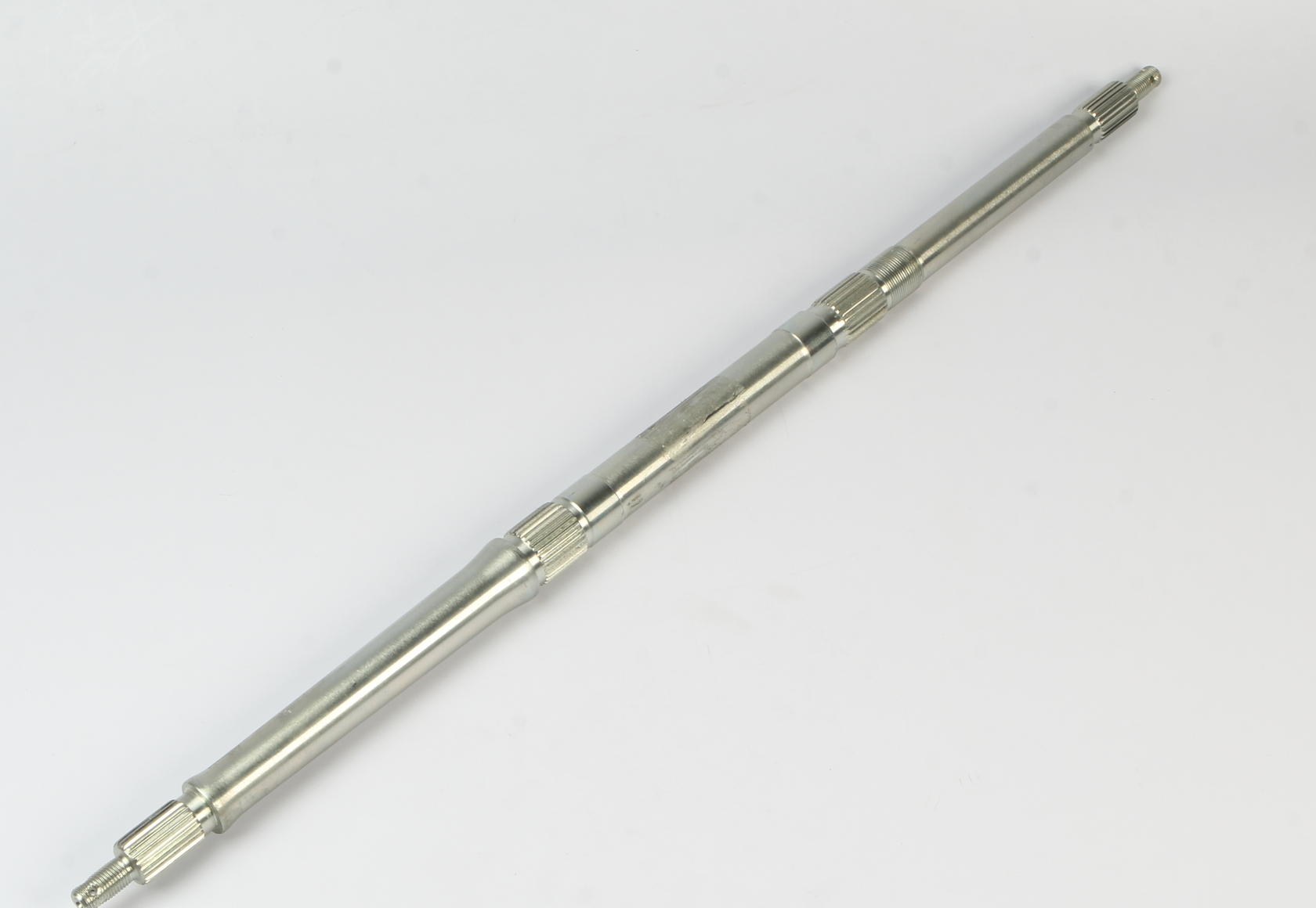 Задняя неразрезная ось квадроцикла длиной 770 мм с отдельными шлицевыми ступицами и шлицевыми посадками для ведомой звезды и одного тормозного диска