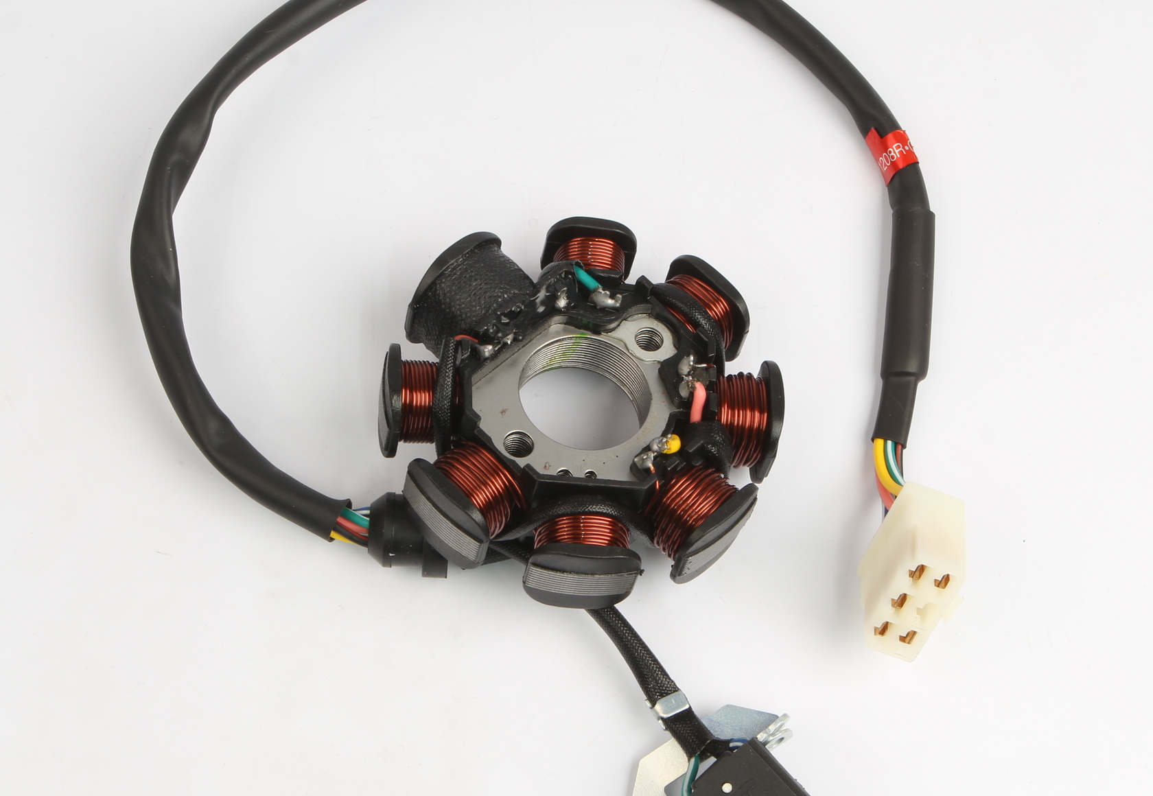Статор генератора 165FMM, 172FMM, 174MN-3 (CBS300). В комплекте датчик положения коленвала. (AC CDI) Диаметр внешний/внутренний, мм: 87/ 29 Ширина полная, мм: 31 Крепление, мм: ф5х2х40 Длина кабеля, мм: 470 Количество присоеднительных колодок*, шт: К1-5 *К1- читать так: "колодка с 1 контактом, 5 шт"