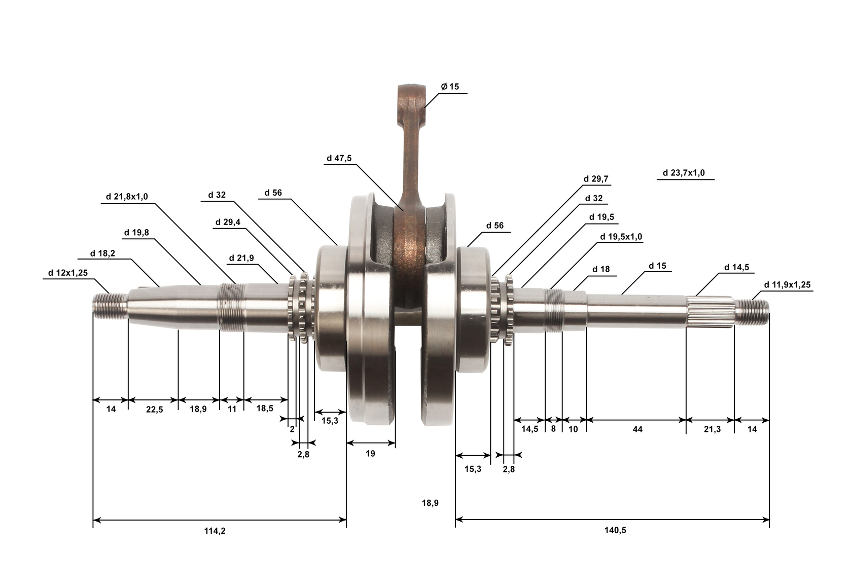 Длина ( межцентровое расстояние между НШГ и ВШГ) шатуна, мм: 82