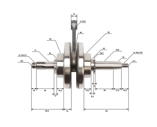 Длина ( межцентровое расстояние между НШГ и ВШГ) шатуна, мм: 82