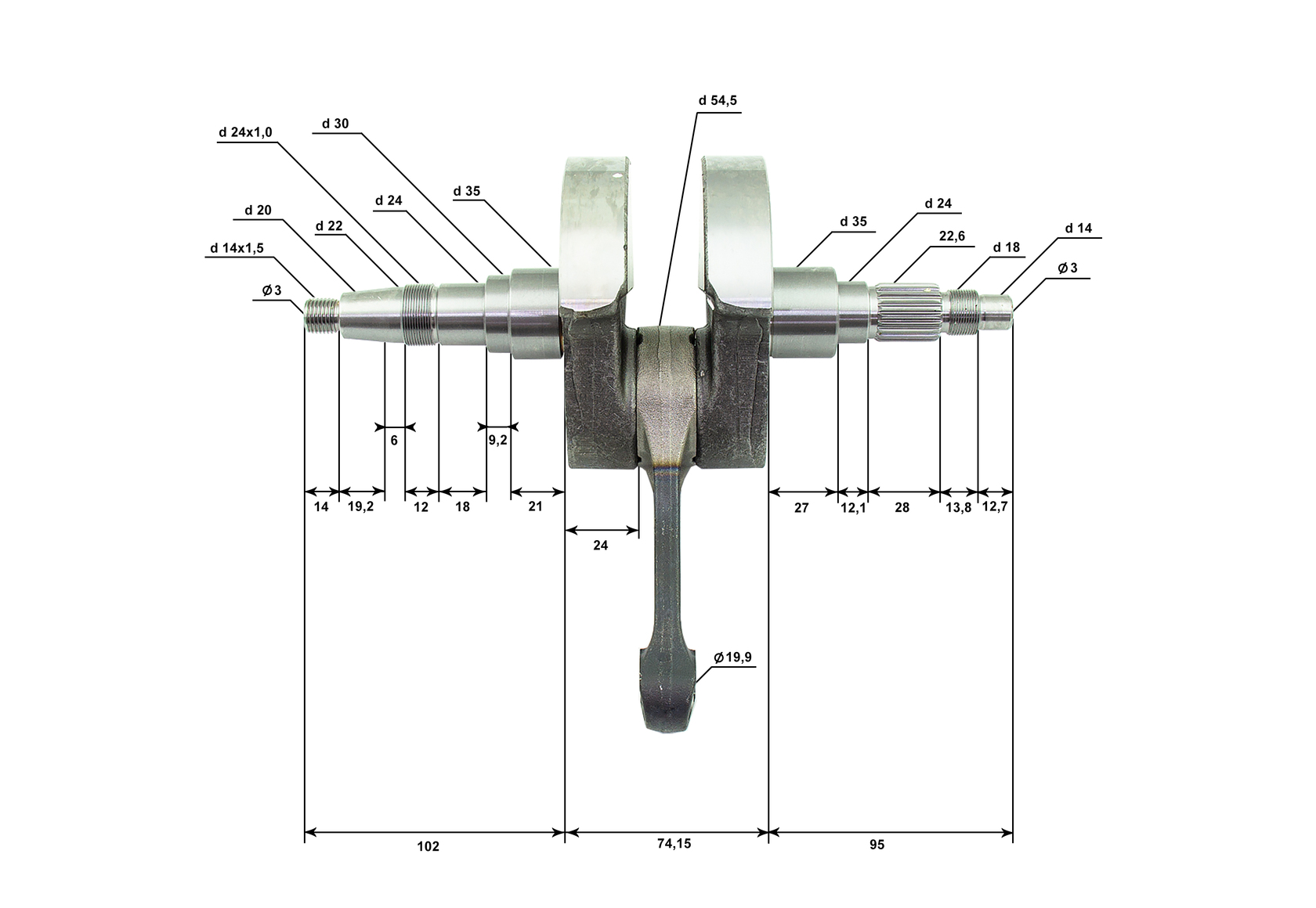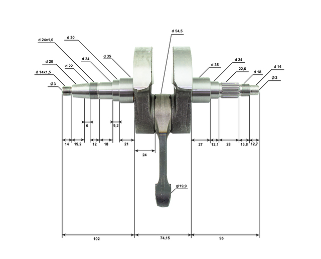 Длина ( межцентровое расстояние между НШГ и ВШГ) шатуна, мм: 112