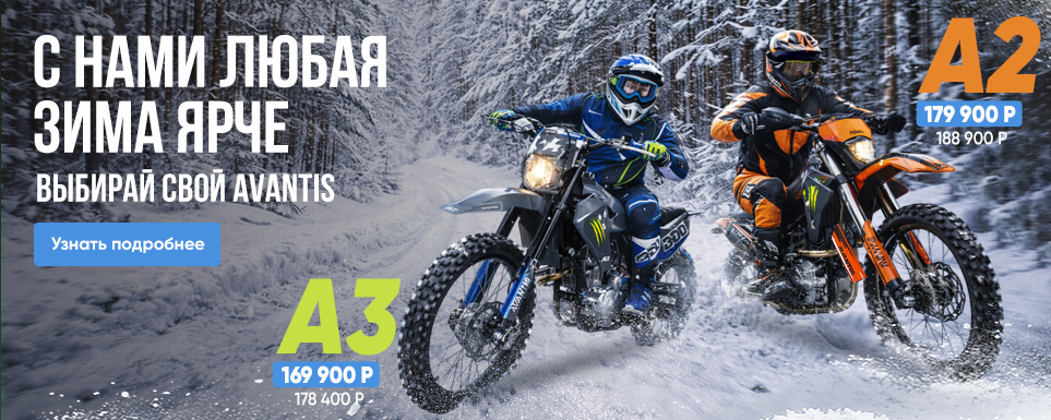 Пока зима в самом разгаре, цены на эти модели стали ниже. Так что если давно присматривались к новому мотоциклу — сейчас тот самый момент, когда можно забрать свой Avantis максимально выгодно.