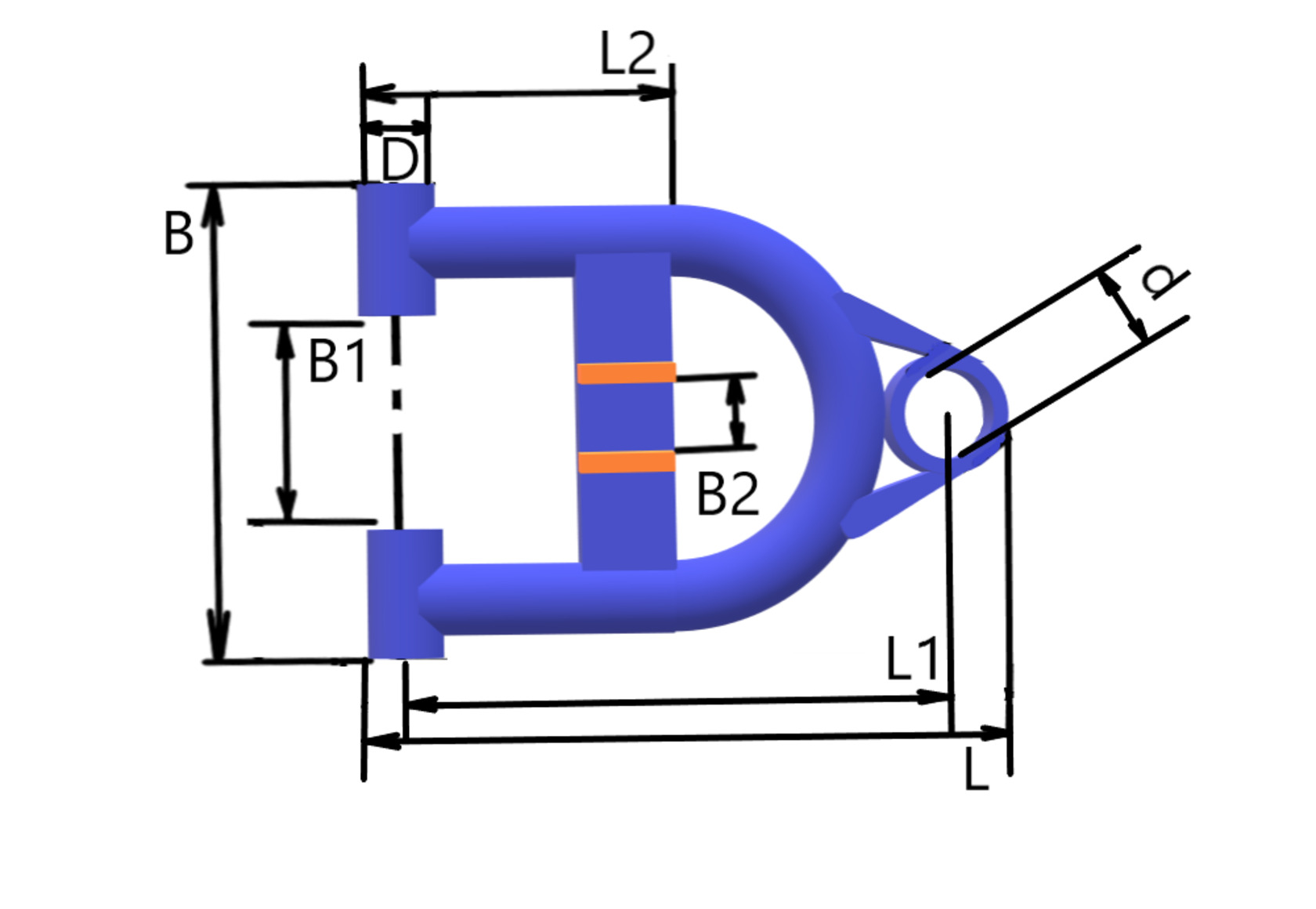 Внутренний диаметр ушей креплений к раме D, мм: