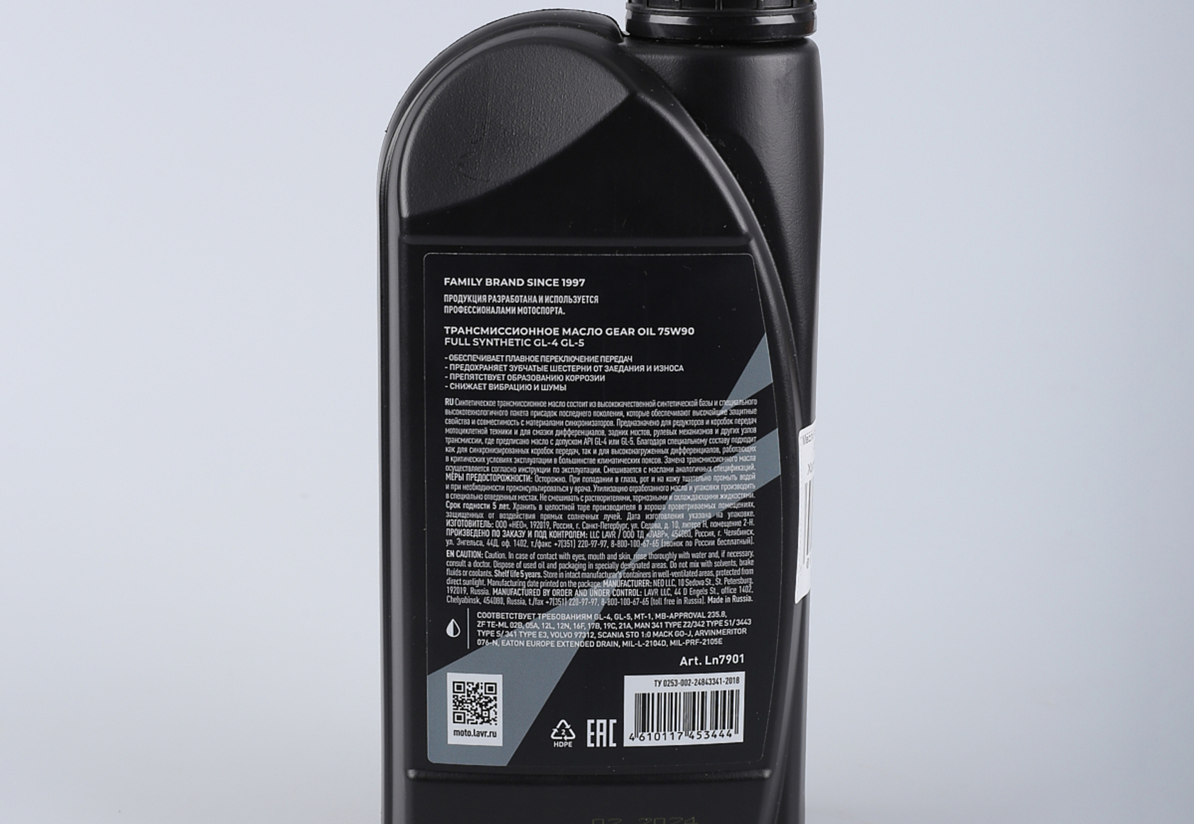 Масло трансмиссионное LAVR MOTO GT GEAR OIL 75W90 G4/5, 1 л